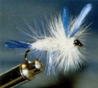 À mes débuts en mouches sèches à saumon, vers 1960, j’utilisais des mouches de type White-Wulff, Grey-Wulff et Brown-Wulff, construites selon la recette originale avec l’utilisation exclusive du poil de cerf de Virginie (Buck-tail) aussi bien pour le corps, les ailes et la queue. Puis peu à peu, tout en conservant l’aspect général de la mouche, j’y ai mis ma touche personnelle. J’ai remplacé le poil de cerf par du poil creux de caribou pour le corps, puis j’ai utilisé la plume de coq pour la collerette palmer à laquelle j’ai ajouté quatre pointes de hackles pour les ailes et deux autres pour les cerques de la queue. Enfin, j’ai remplacé le fil ciré de la construction classique par un mono filament en nylon de 8/100 qui a l’avantage d’être élastique et de maintenir un serrage constant sur les éléments, en plus de limiter le volume des enroulements et de les rendre invisibles.