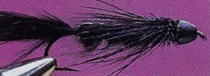 La Black Dragon Hameçon: Mustad 3366 N° 1.Fil: Uni noir 6/0.Queue: Fibres rouges d’une plume de poule.Corps: Chenille noire (large).Aile: 6 brins de Flashabou Mirage